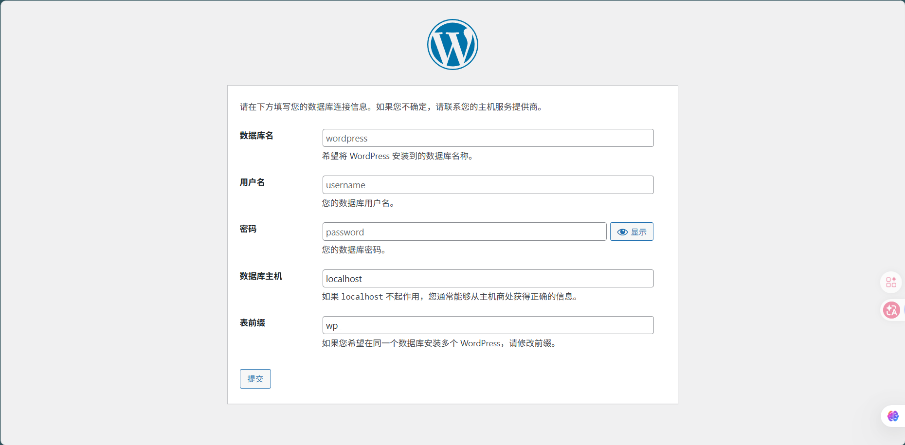 数据库名:wordpress